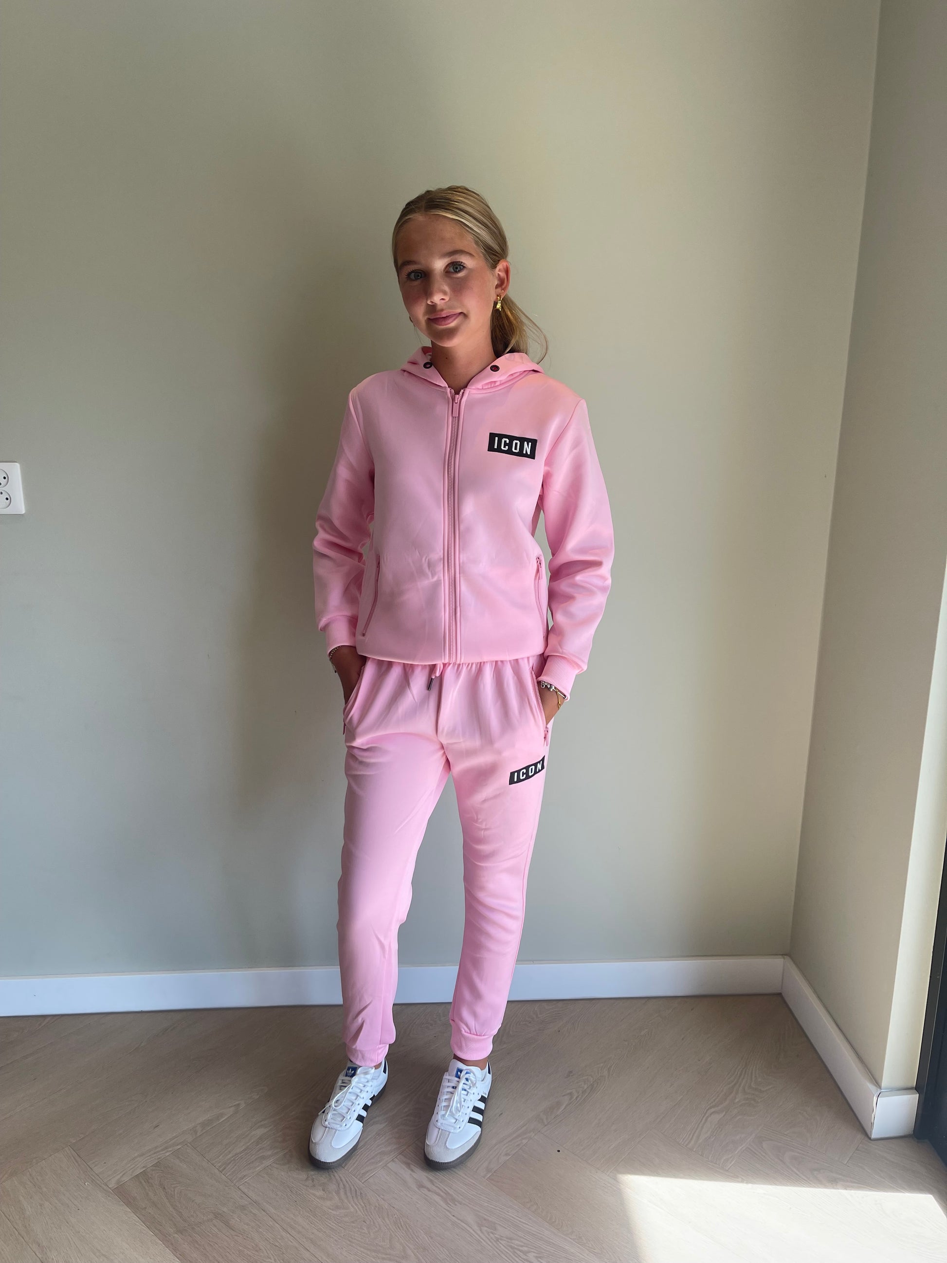 Laat je soort stralen in stijl met dit superleuke Icon trainingspak. Jurk in beige en roze, inclusief een bijpassend tasje.