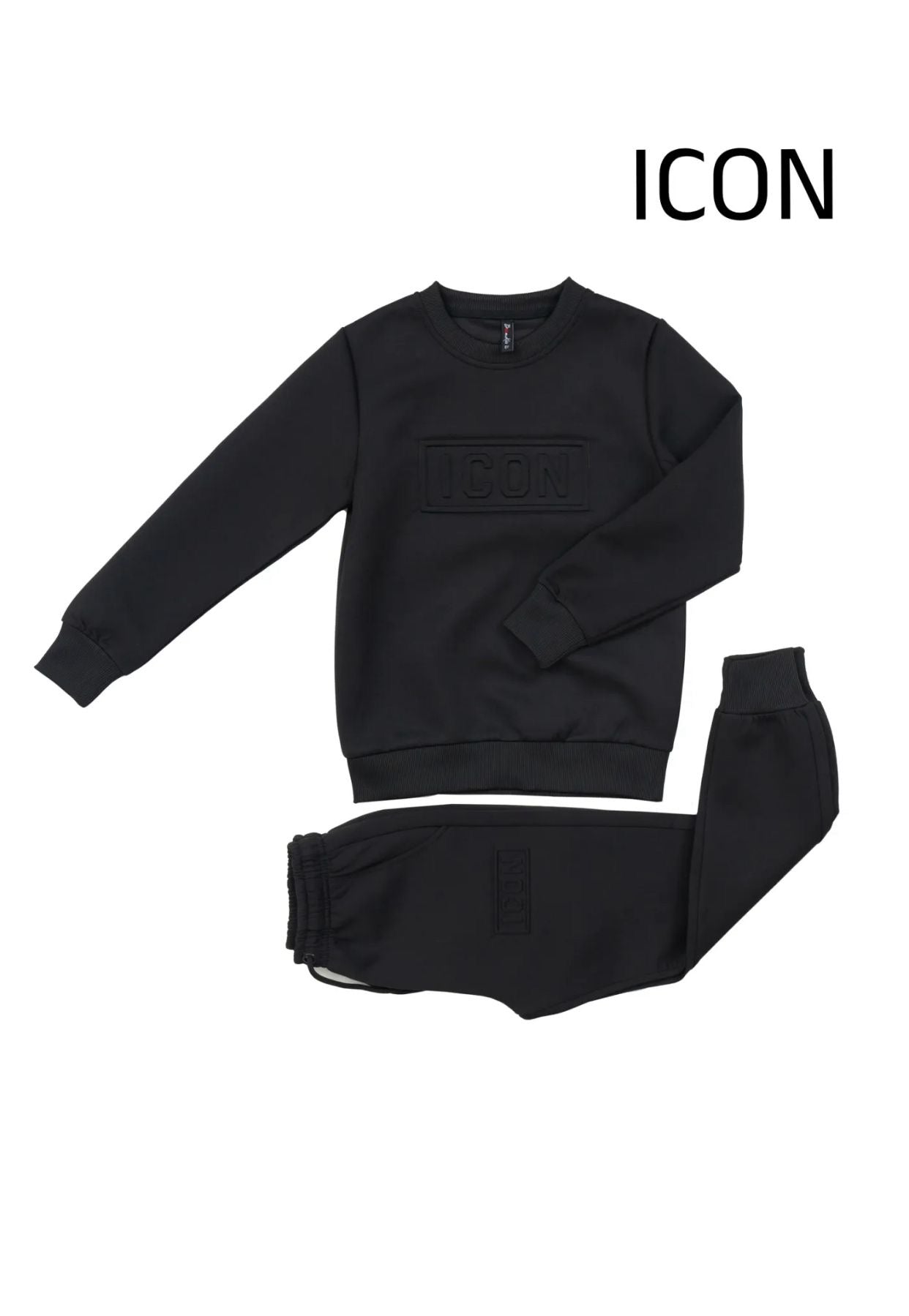 Dit ICON pak is de musthave set van dit seizoen voor jongens. De outfit bestaat uit een comfortabele trui met fundamentele broek, gemaakt om er elke dag stijlvol én relaxed bij te lopen.De trui heeft aan de voorkant een strakke ICON-print in het midden, wat zorgt voor een moderne, stoere uitstraling. De broek sluit hier perfect bij aan dezelfde ICON-print, waardoor het geheel een mooie, complete look krijgt.