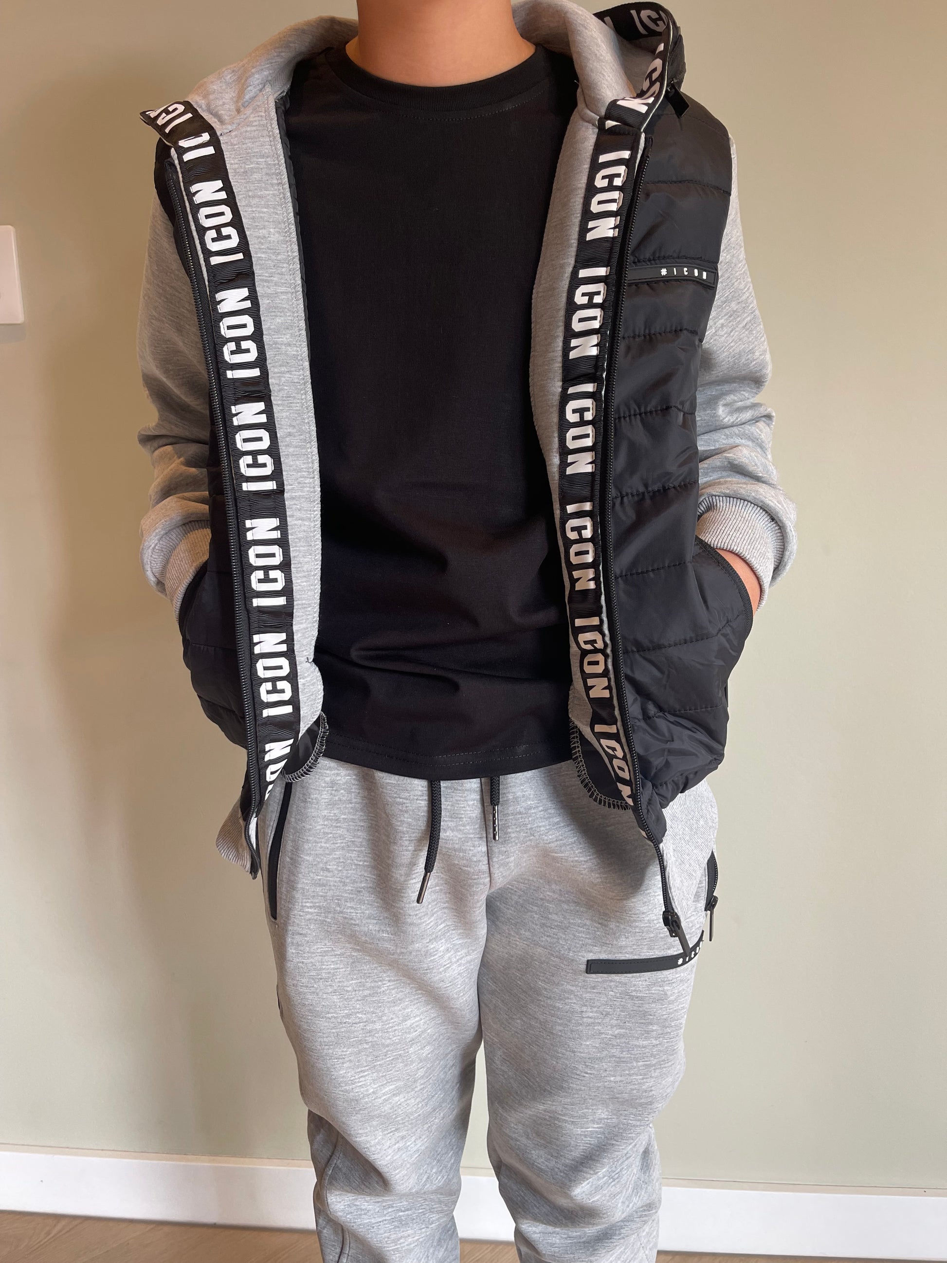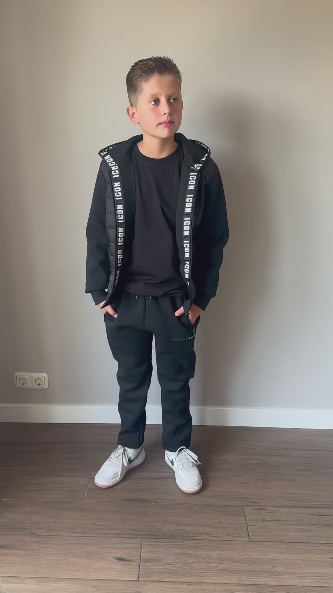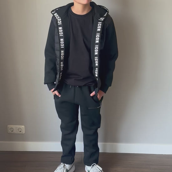Dit comfortabele joggingpak van ICON is de perfecte combinatie van stijl en gemak. Het pak bestaat uit een sportief jasje met bijpassende broek. Het jasje is voorzien van een capuchon en een ritssluiting, waarbij de binnenkant van de capuchon en rits zijn afgewerkt met een zwarte boord en witte ICON-letters. Een subtiel, maar stoer detail dat het joggingpak een unieke uitstraling geeft.