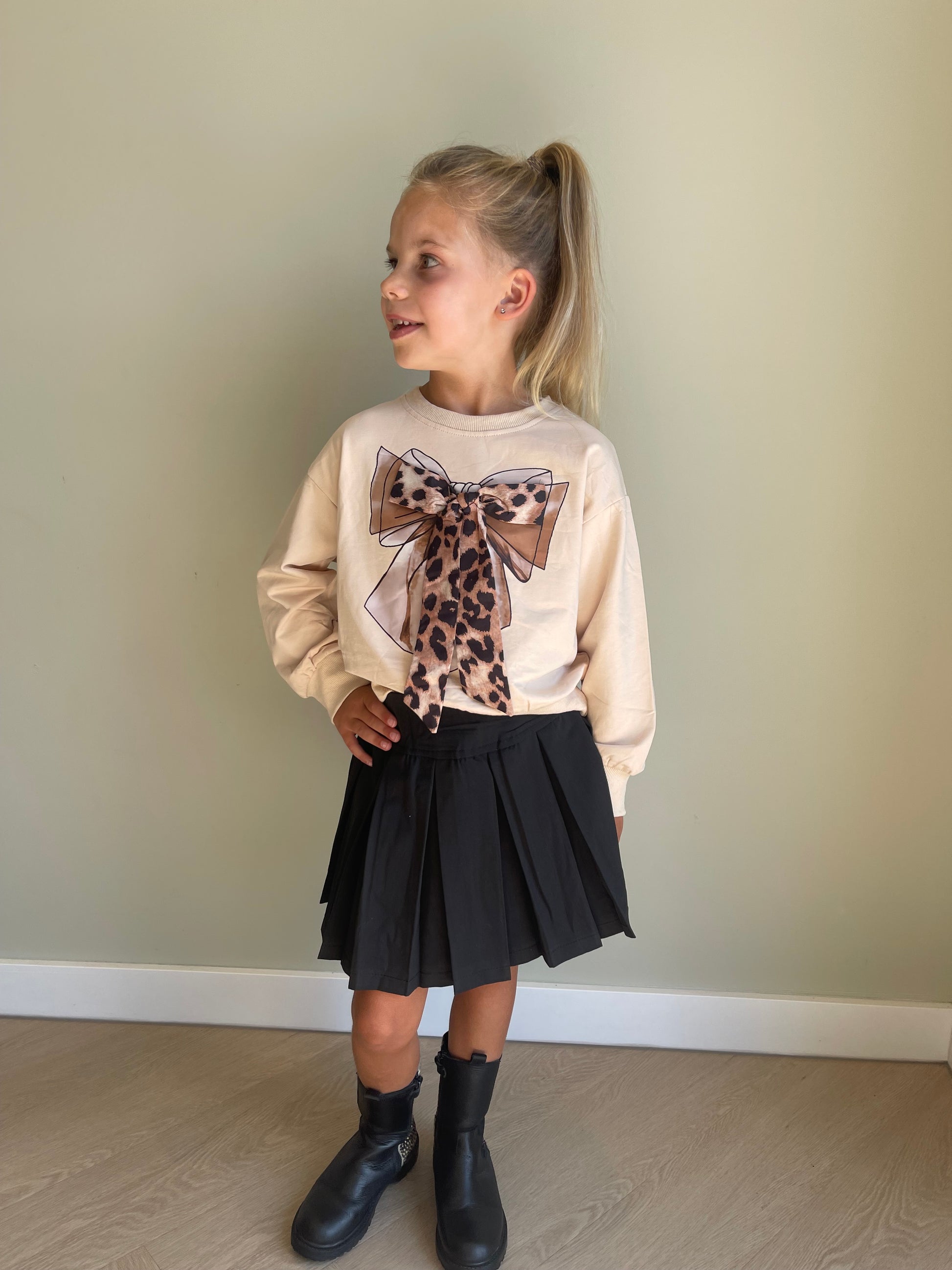 - foto 2: Speels en schattig! Model met trui draagt maat 110/116 (6) en is 1,16m.