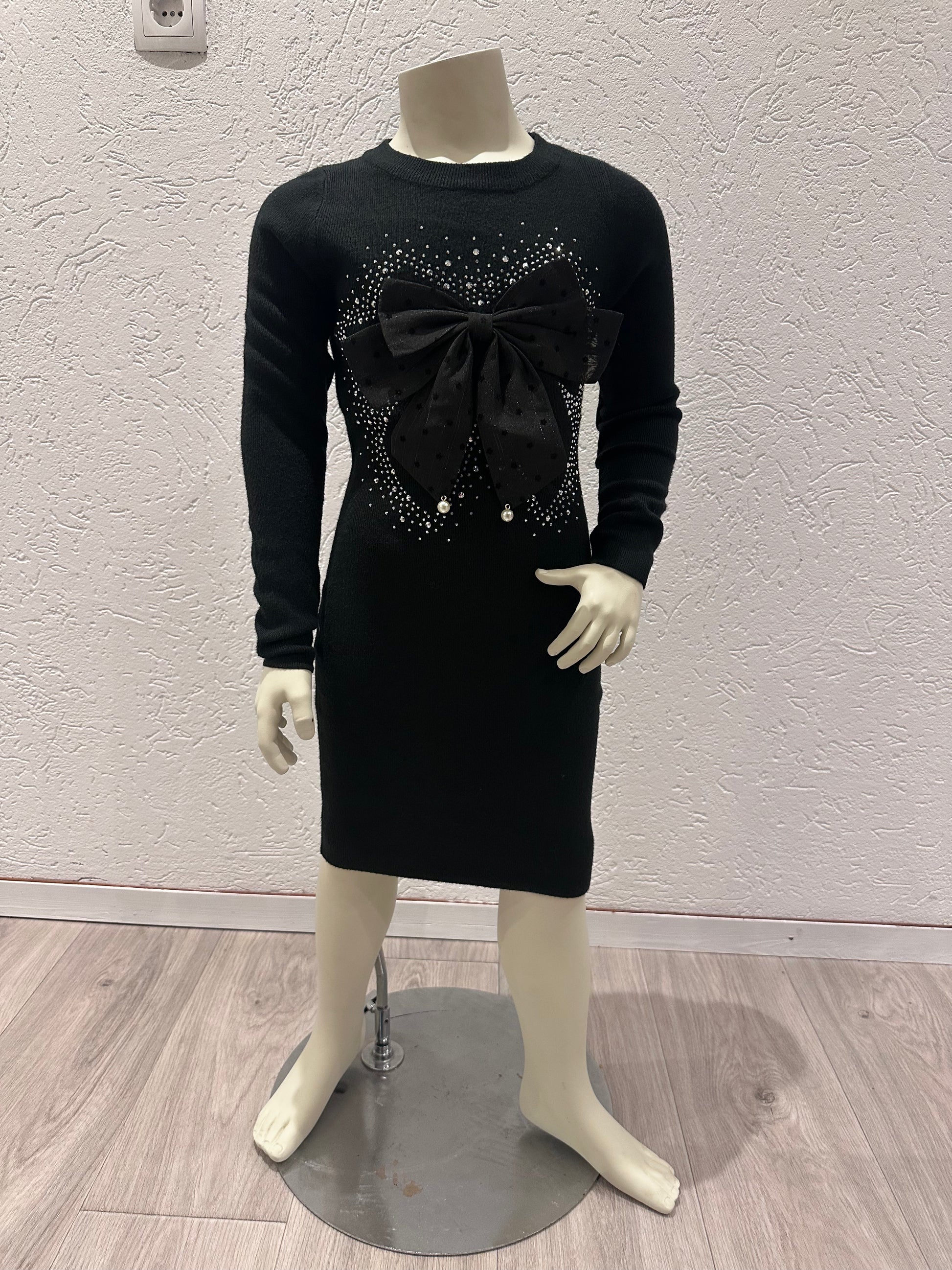 Zwart jurkje met strik en glitters